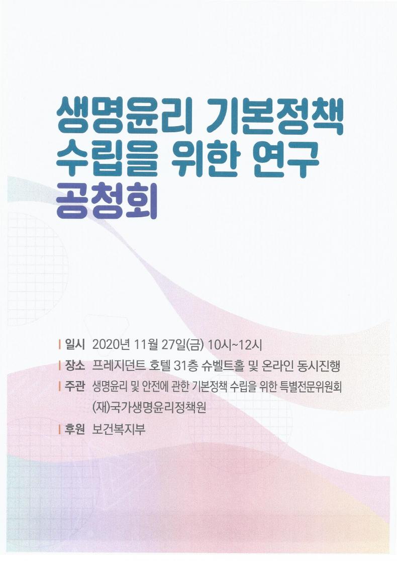 제목 생명윤리 기본정책 수립을 위한 연구 공청회